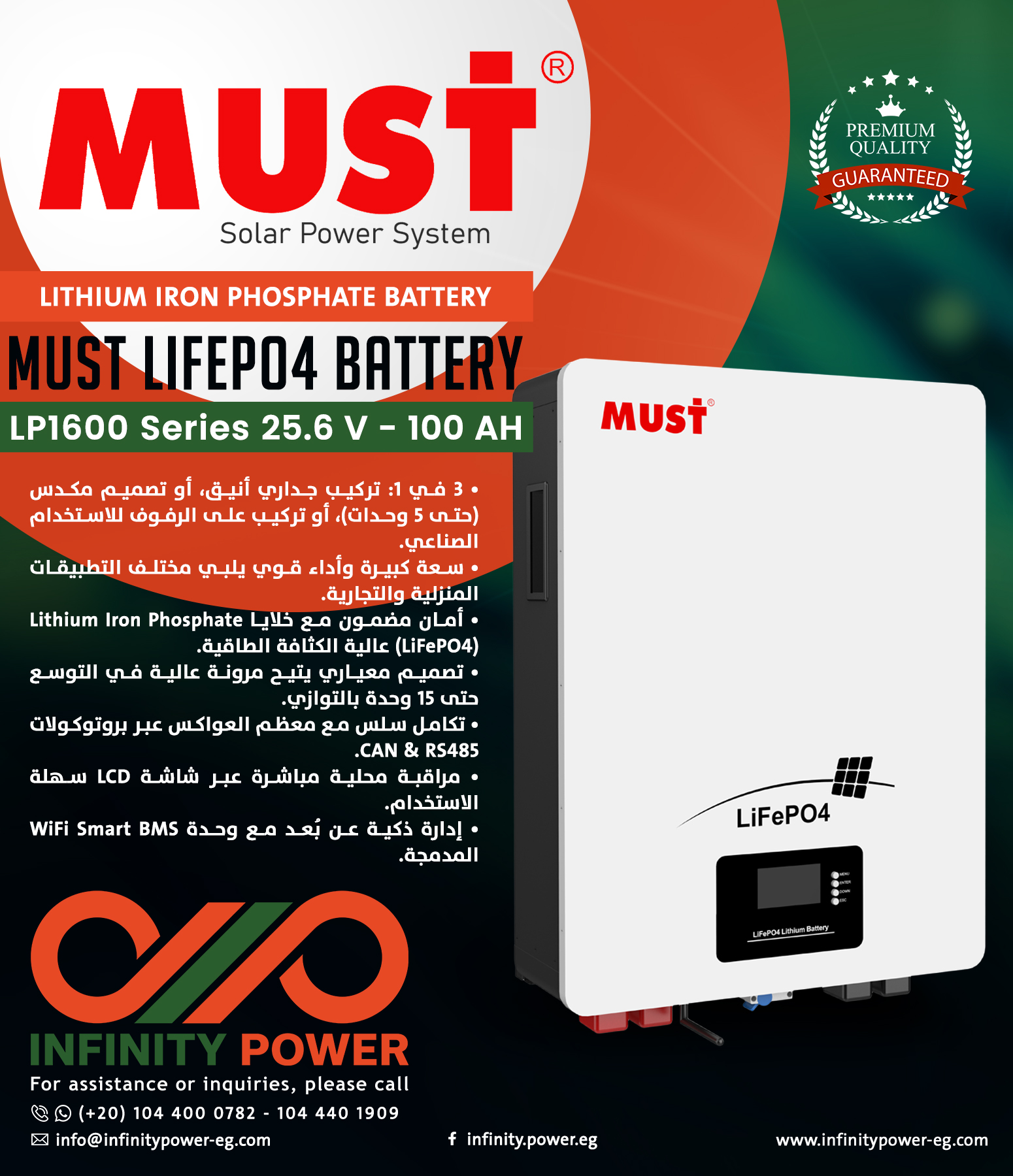 بطاريات LP1600 Series – طاقة بلا حدود بذكاء متكامل تقدم لك سلسلة بطاريات LP1600 حلاً طاقيًا متطورًا يجمع بين المرونة، الأمان، والكفاءة العالية. بفضل التصميم المعياري، يمكنك دمج ما يصل إلى 15 وحدة للحصول على سعة طاقية تتراوح بين 2.56kWh حتى 10.24kWh، مما يمنحك الحرية لتوسيع نظامك بحسب احتياجاتك. مميزات استثنائية: 3 في 1: تركيب […]