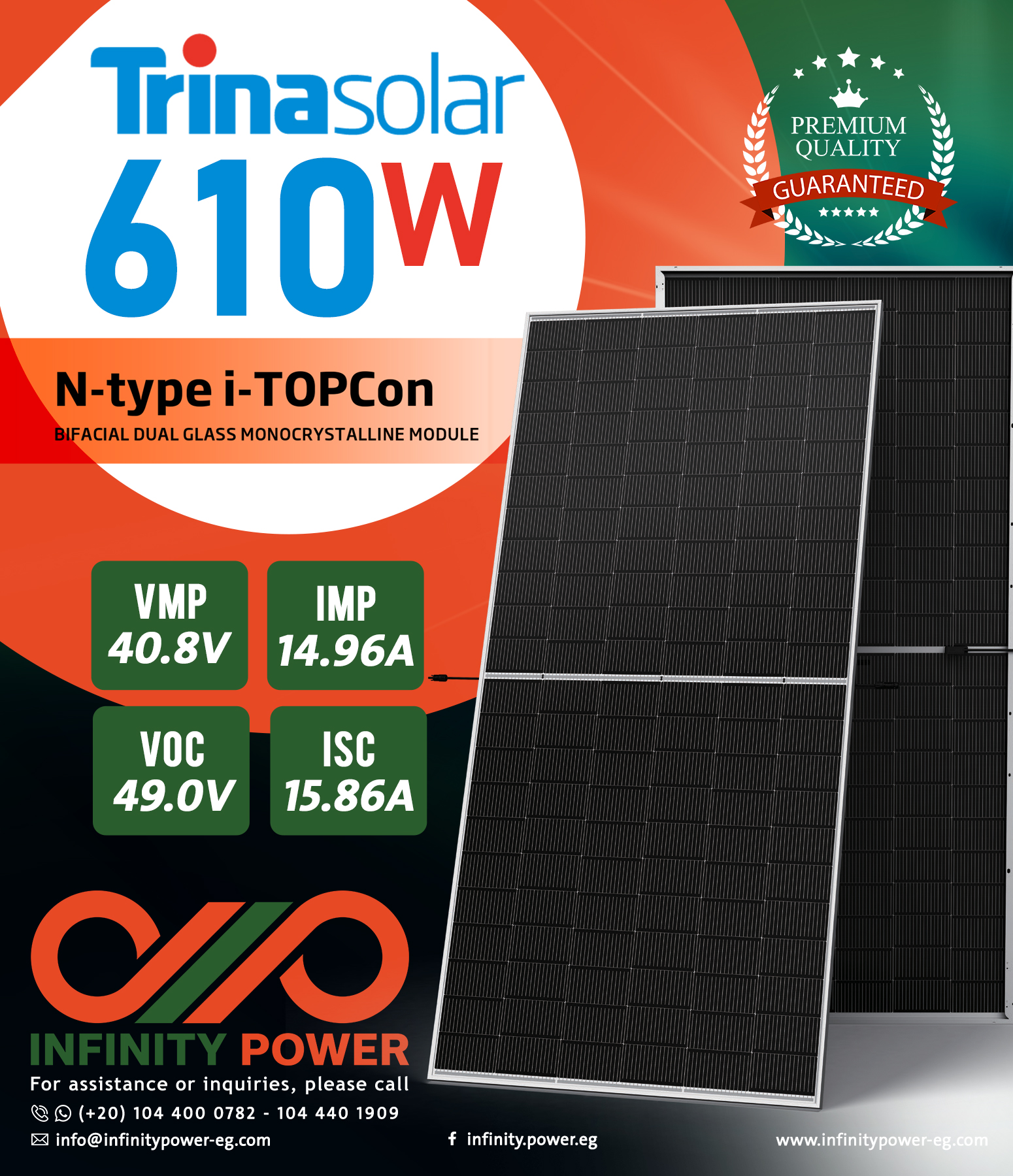 610 واط ليس مجرد لوح طاقة… إنه استثمار طويل الأمد بجدوى مالية قوية وضمان أداء معتمد حتى 2055.